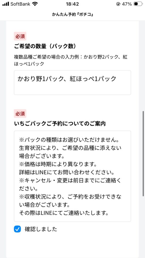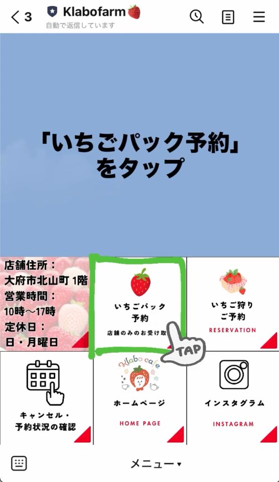 いちごパックの予約はLINEまたはお電話にて受け付けております。